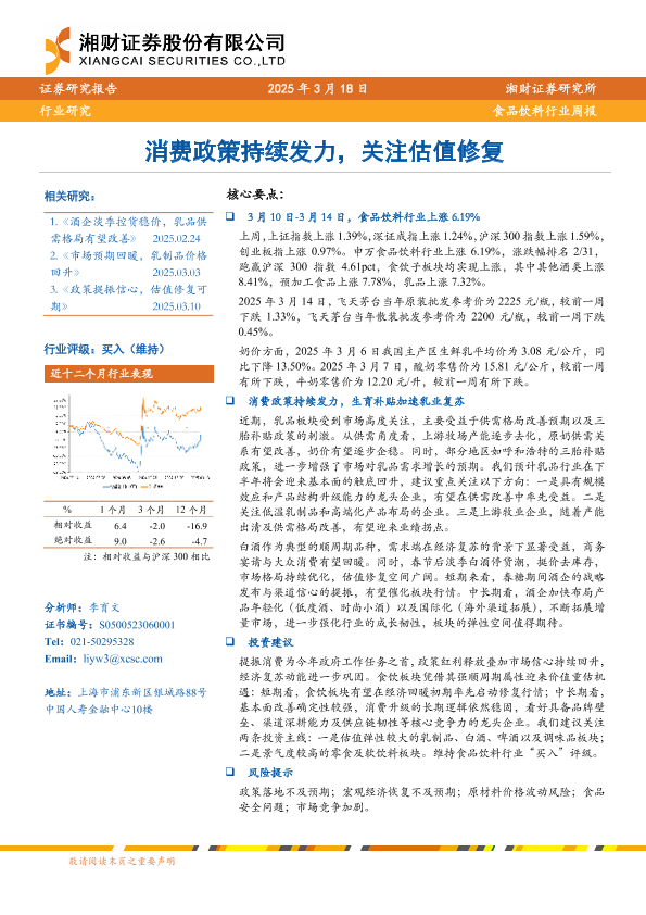 【湘财证券】【20250318】20250318-湘财证券-食品饮料行业周报:消费政策持续发力,关注估值修复-11页