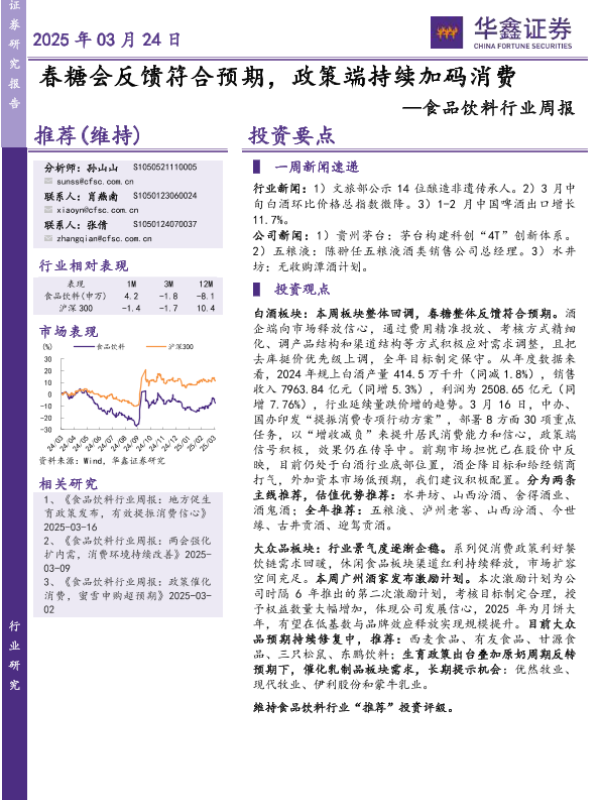 【华鑫证券】【20250324】20250324-华鑫证券-食品饮料行业周报:春糖会反馈符合预期,政策端持续加码消费-20页