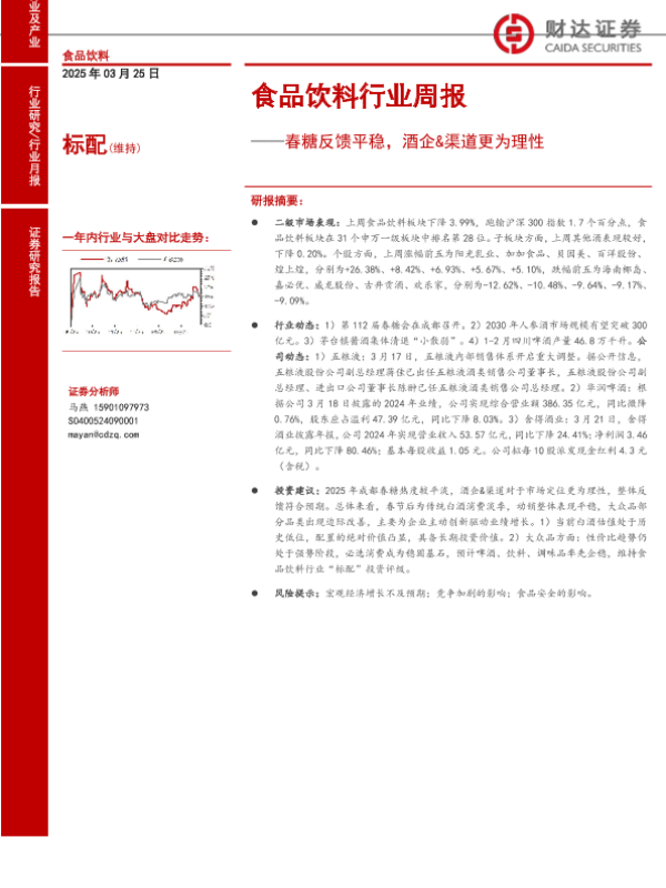 【财达证券】【20250325】20250325-财达证券-食品饮料行业周报:春糖反馈平稳,酒企&渠道更为理性-17页