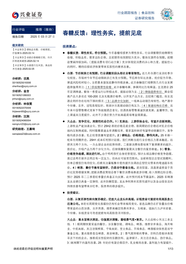 【兴业证券】【20250327】食品饮料:春糖反馈:理性务实,提前见底-13页