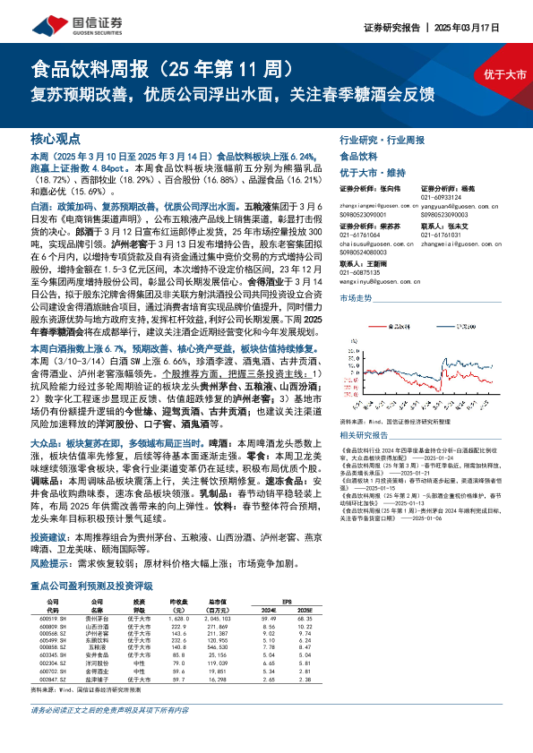 【国信证券】【20250317】食品饮料周报(25年第11周):复苏预期改善,优质公司浮出水面,关注春季糖酒会反馈-16页