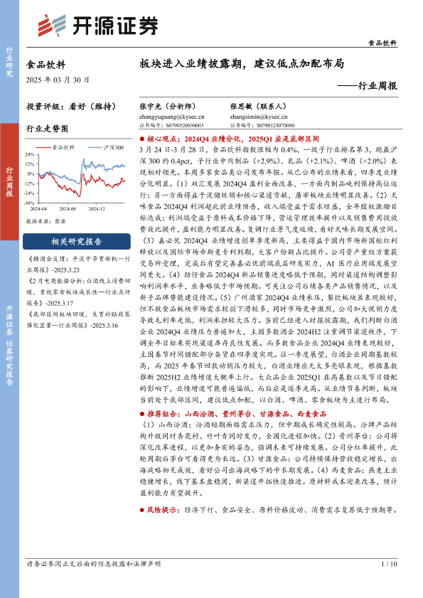 【开源证券】【20250330】食品饮料行业周报:板块进入业绩披露期,建议低点加配布局-10页