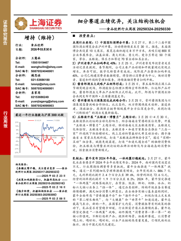 【上海证券】【20250330】20250330-上海证券-食品饮料行业周报:细分赛道业绩优异,关注结构性机会-19页