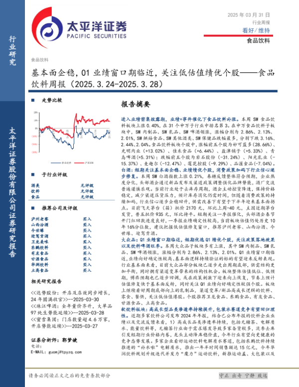 【太平洋证券】【20250331】20250331-太平洋-食品饮料行业周报:基本面企稳,01业绩窗口期临近,关注低估值绩优个股-11页