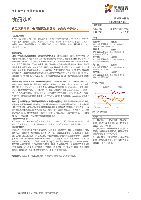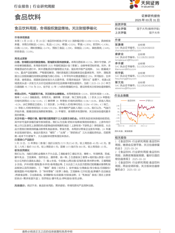 【天风证券】【20250331】食品饮料行业周报:舍得股权激励落地,关注财报季催化-18页