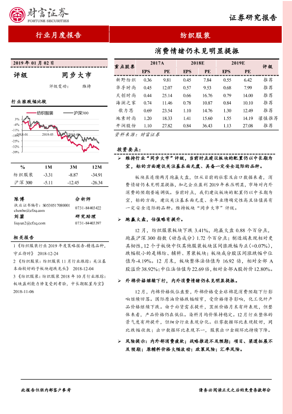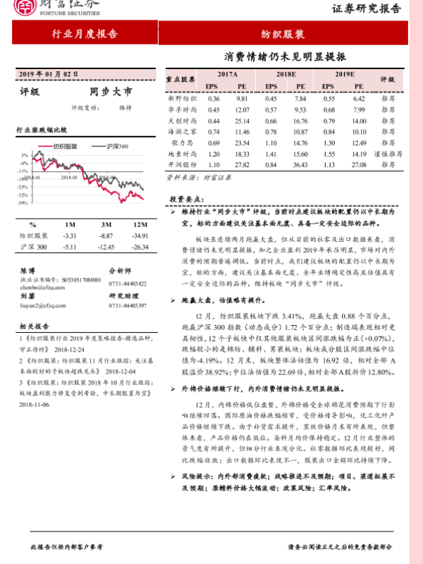 【财信证券】【20190102】纺织服装行业月度报告:消费情绪仍未见明显提振-10页