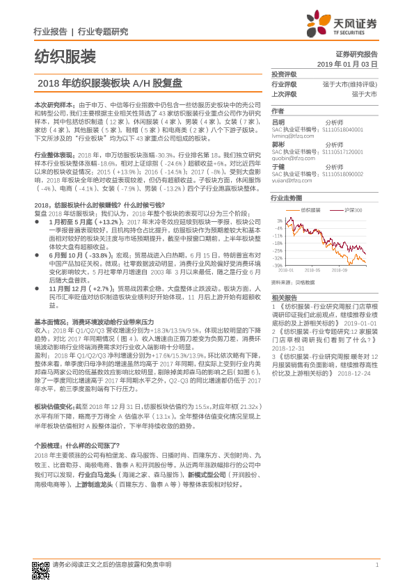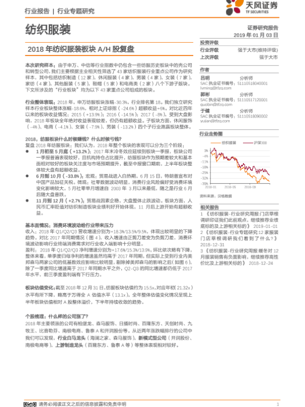 【天风证券】【20190103】2018年纺织服装板块A/H股复盘-14页