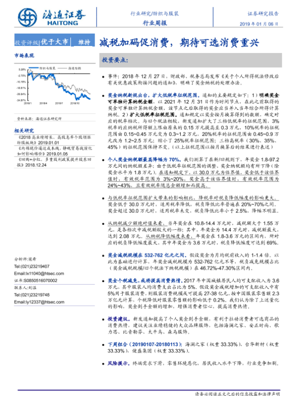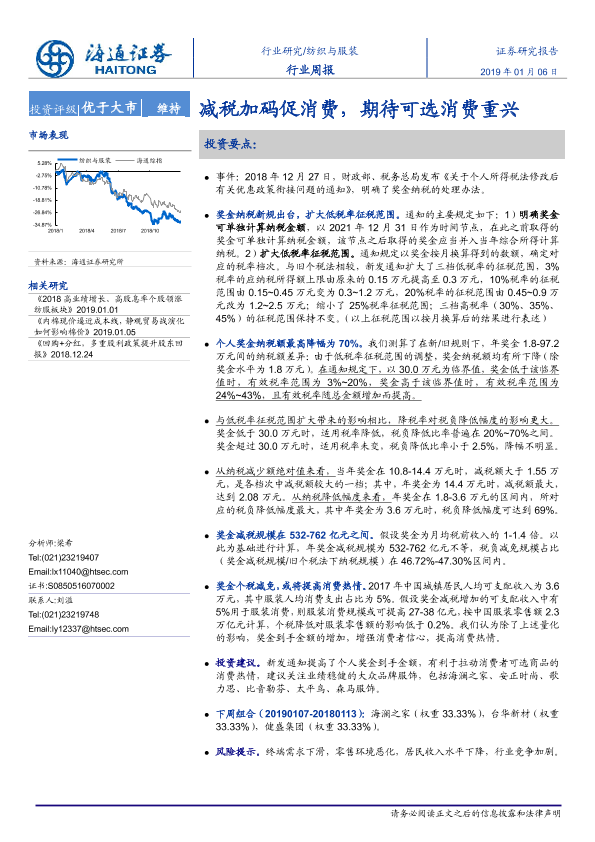 【海通证券】【20190106】20190106-海通证券-纺织与服装行业周报:减税加码促消费,期待可选消费重兴-12页
