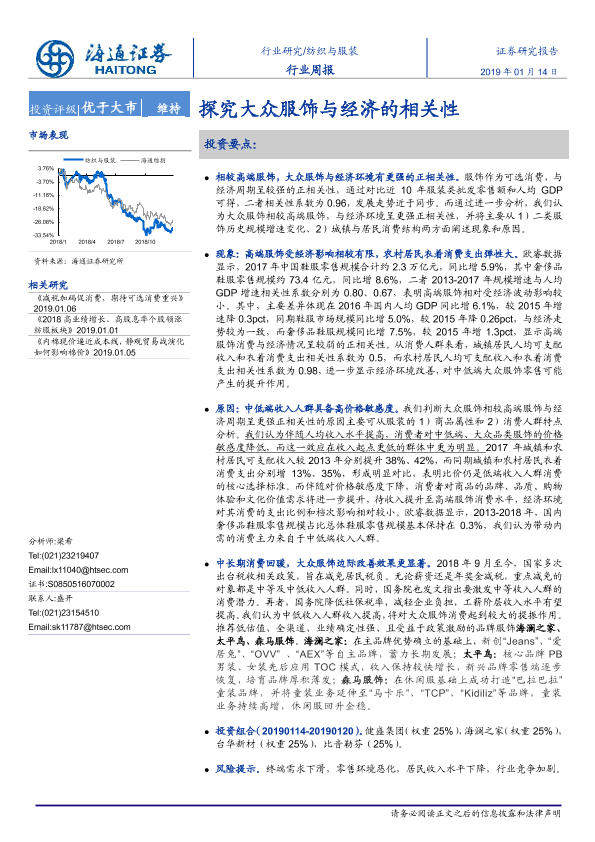【海通证券】【20190114】20190114-海通证券-纺织与服装行业周报:探究大众服饰与经济的相关性-11页