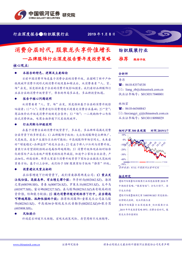 【银河证券】【20190108】品牌服饰行业深度报告暨年度投资策略:消费分层时代,服装龙头享价值增长-41页