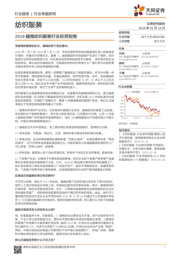 【天风证券】【20190119】2019越南纺织服装行业投资指南-21页