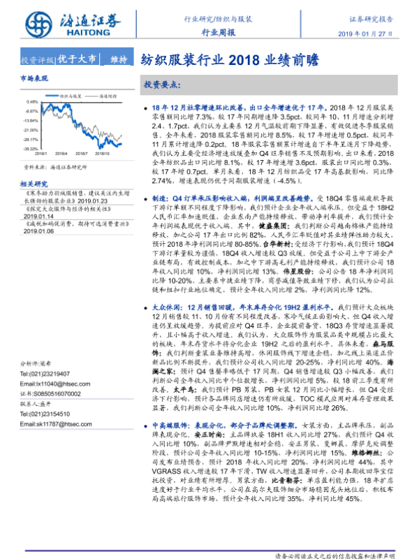 【海通证券】【20190127】20190127-海通证券-纺织与服装行业周报:纺织服装行业2018业绩前瞻-12页