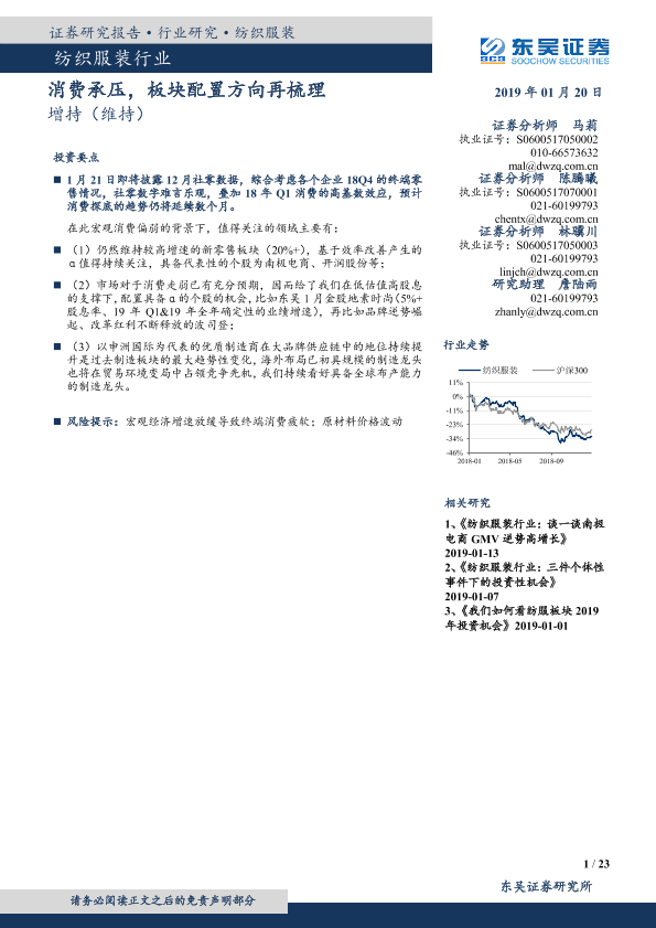 【东吴证券】【20190120】纺织服装行业:消费承压,板块配置方向再梳理-23页