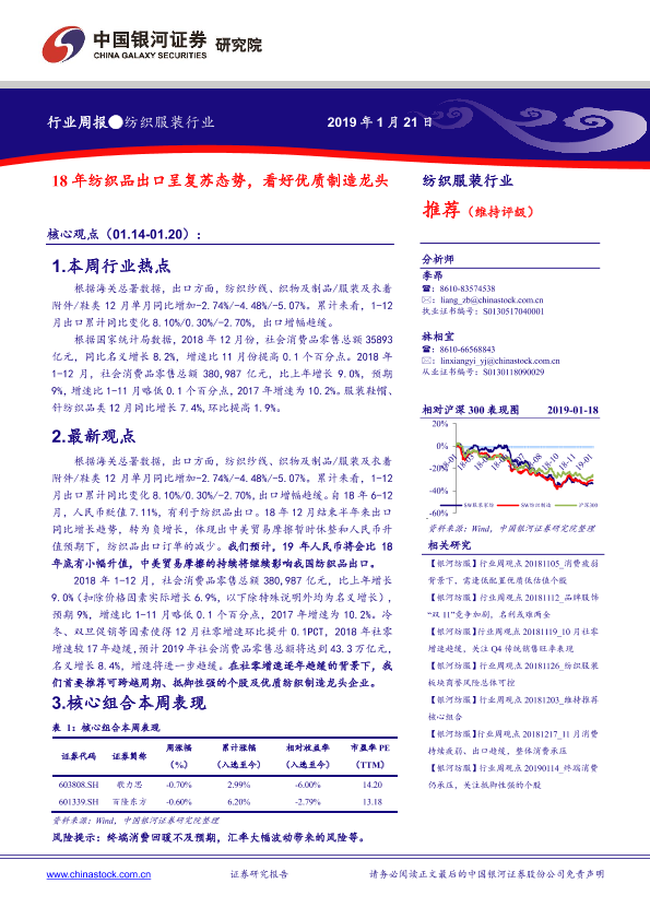 【银河证券】【20190121】20190121-中国银河-纺织服装行业周报:18年纺织品出口呈复苏态势,看好优质制造龙头-23页