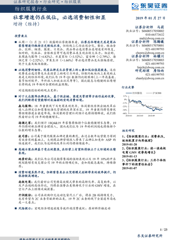 【东吴证券】【20190127】纺织服装行业:社零增速仍在低位,必选消费韧性初显-23页