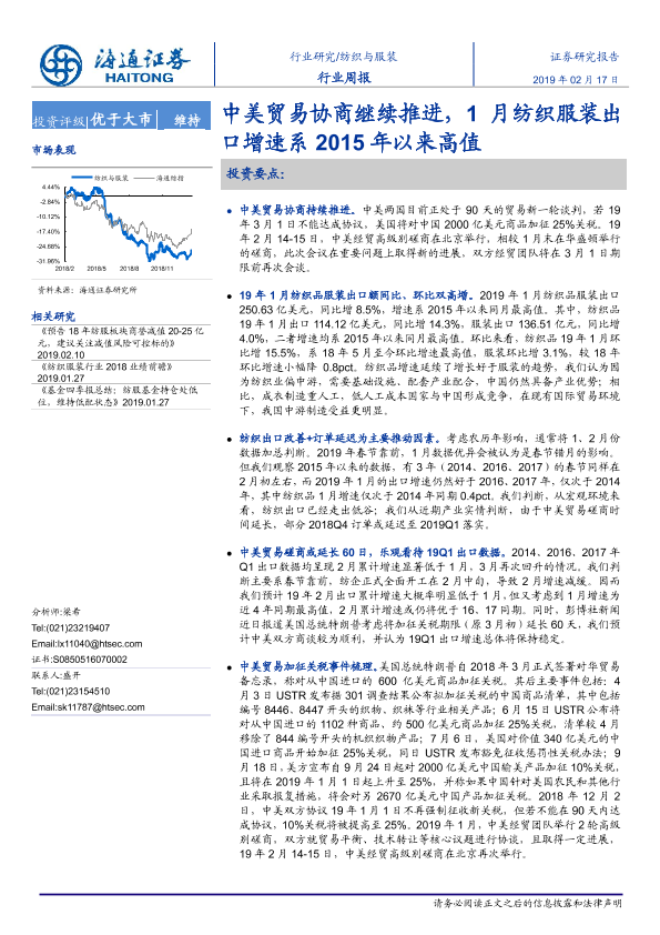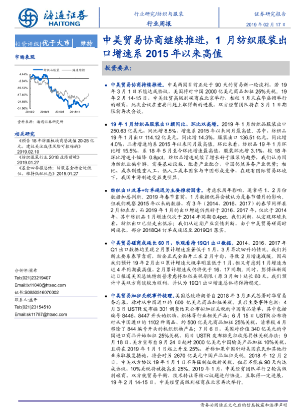 【海通证券】【20190217】20190217-海通证券-纺织与服装行业周报:中美贸易协商继续推进,1月纺织服装出口增速系2015年以来高值-11页