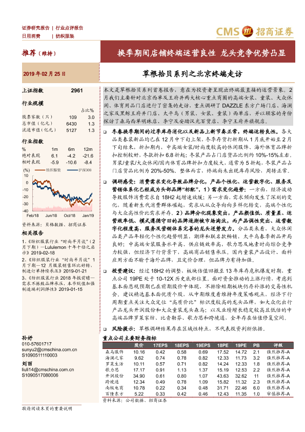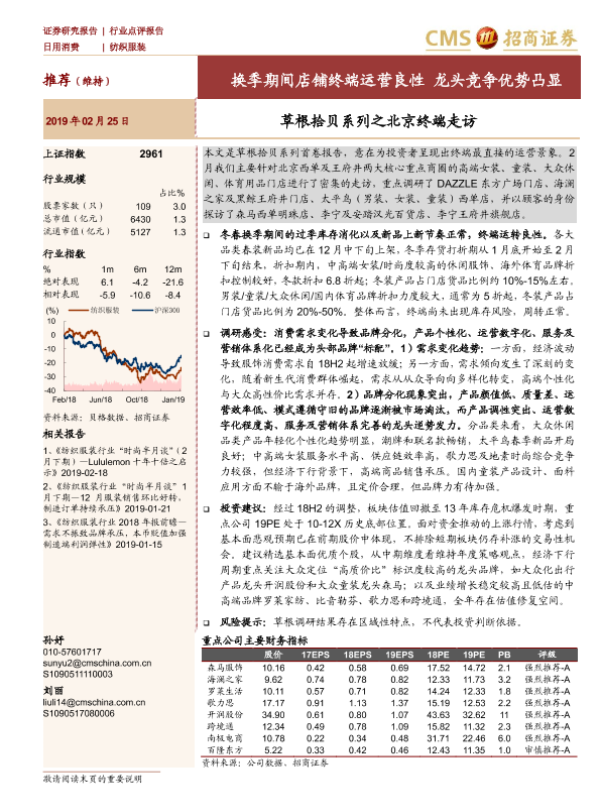 【海通证券】【20190225】纺织服务行业点评报告:草根拾贝系列之北京终端走访:换季期间店铺终端运营良性,龙头竞争优势凸显-14页