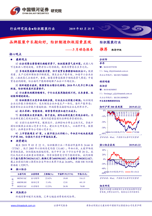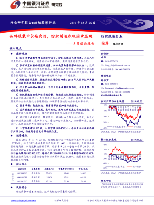 【银河证券】【20190325】20190325-中国银河-纺织服装行业3月动态报告:品牌服装中长期向好,纺织制造积极因素显现-30页