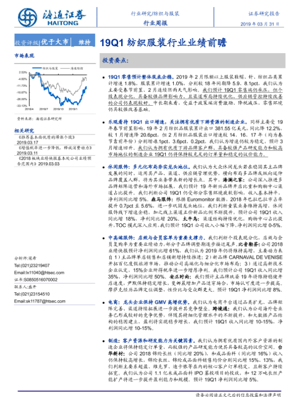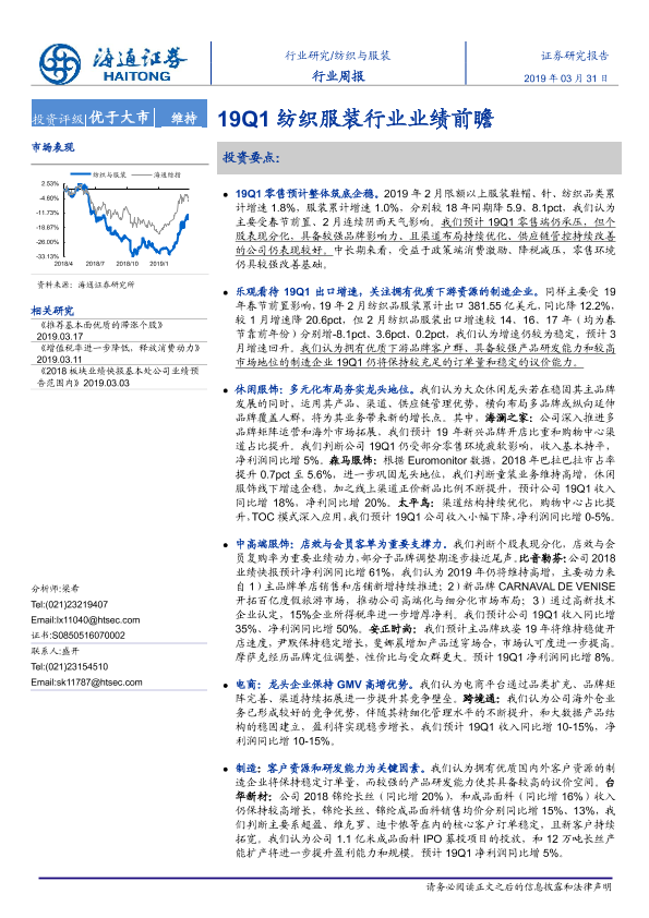【海通证券】【20190331】20190331-海通证券-纺织与服装行业周报:19Q1纺织服装行业业绩前瞻-10页