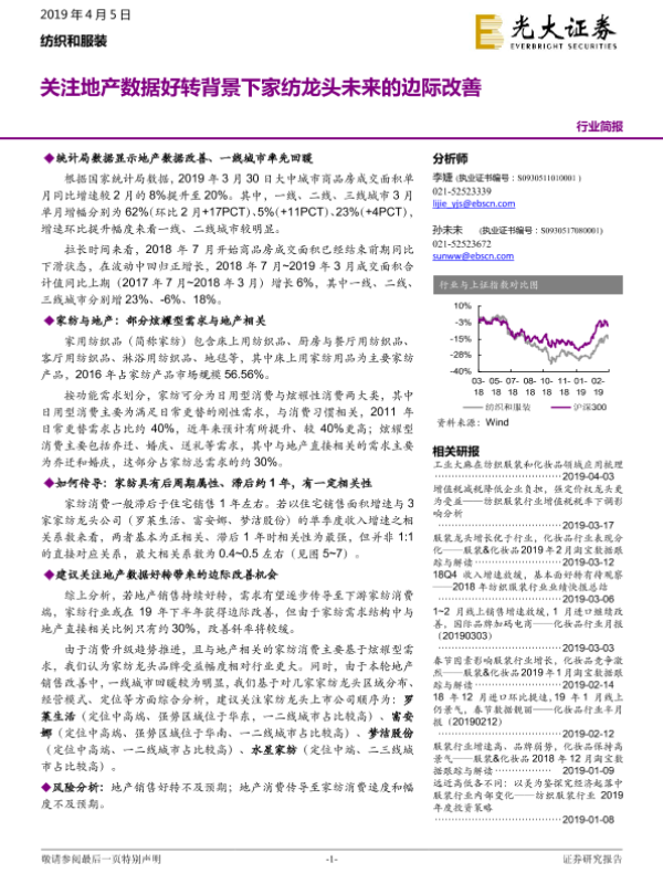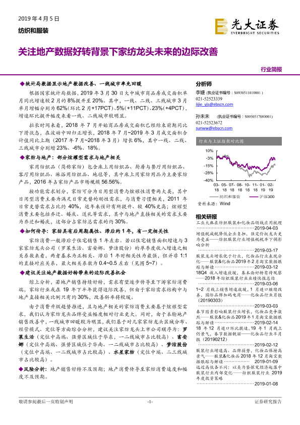 【光大证券】【20190405】纺织和服装行业简报:关注地产数据好转背景下家纺龙头未来的边际改善-4页