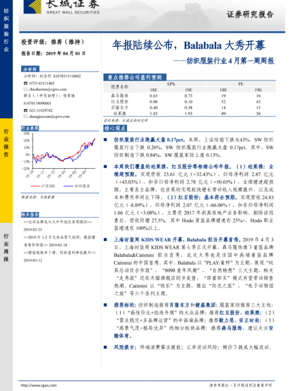 【长城证券】【20190401】20190401-长城证券-纺织服装行业4月第一周周报:年报陆续公布,Balabala大秀开幕-22页