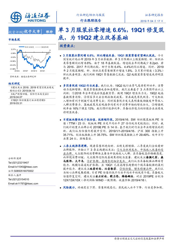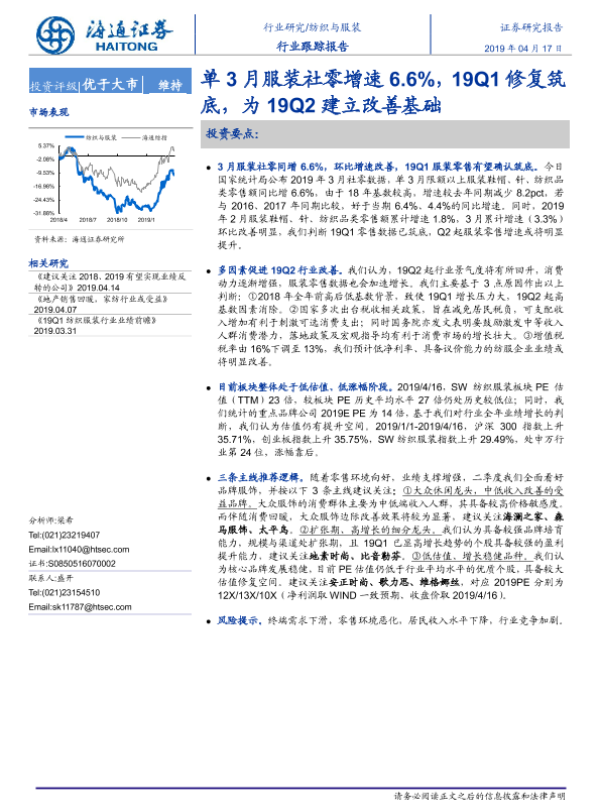 【海通证券】【20190417】20190417-海通证券-纺织服装行业跟踪报告:单3月服装社零增速6.6%,19Q1修复筑底为19Q2建立改善基础-2页