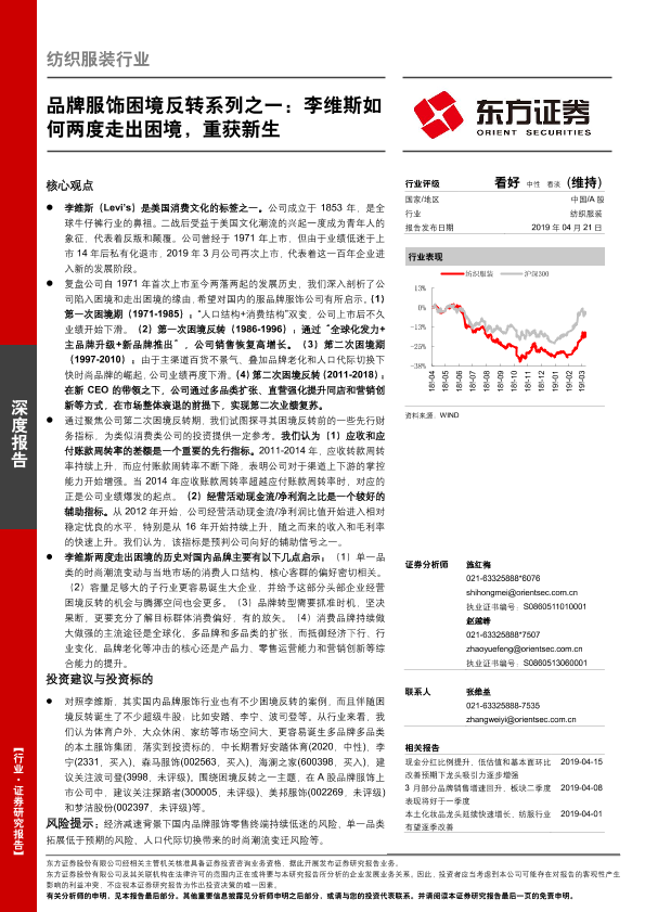 【东方证券】【20190421】纺织服装行业品牌服饰困境反转系列之一:李维斯如何两度走出困境,重获新生-22页