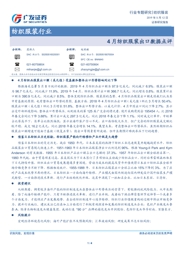 【广发证券】【20190512】纺织服装行业:4月纺织服装出口数据点评-4页