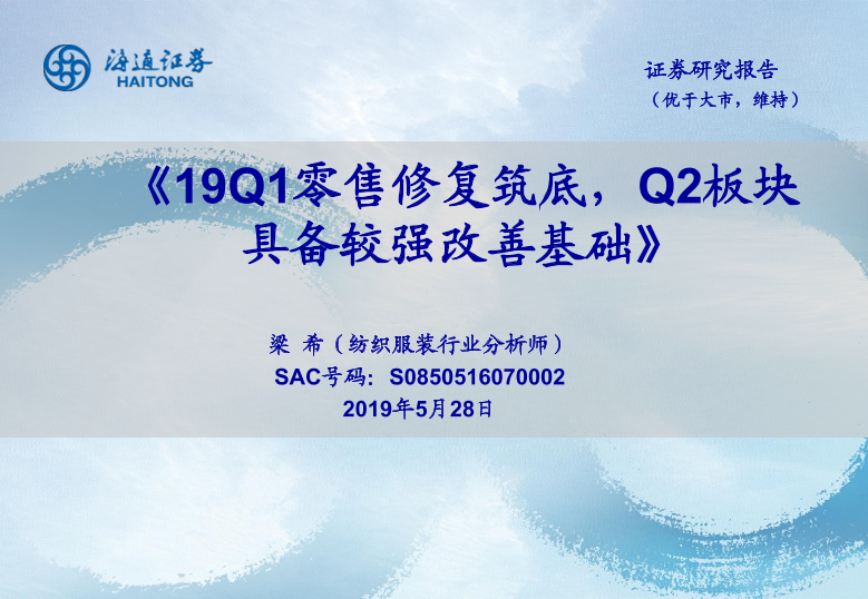 【海通证券】【20190528】19Q1零售修复筑底,Q2板块具备较强改善基础-25页