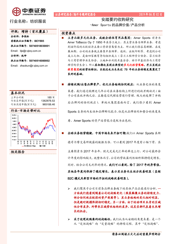 【中泰证券】【20190602】20190602-中泰证券-纺织服装行业海外专题研究报告:Amer Sports的品牌价值 产品分析-安踏要约收购研究-38页