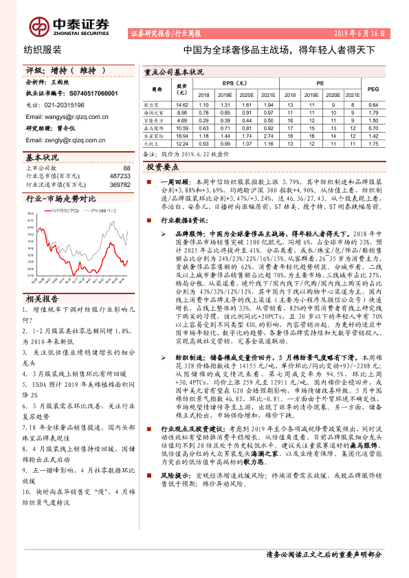 【中泰证券】【20190616】20190616-中泰证券-纺织服装行业周报:中国为全球奢侈品主战场,得年轻人者得天下-14页