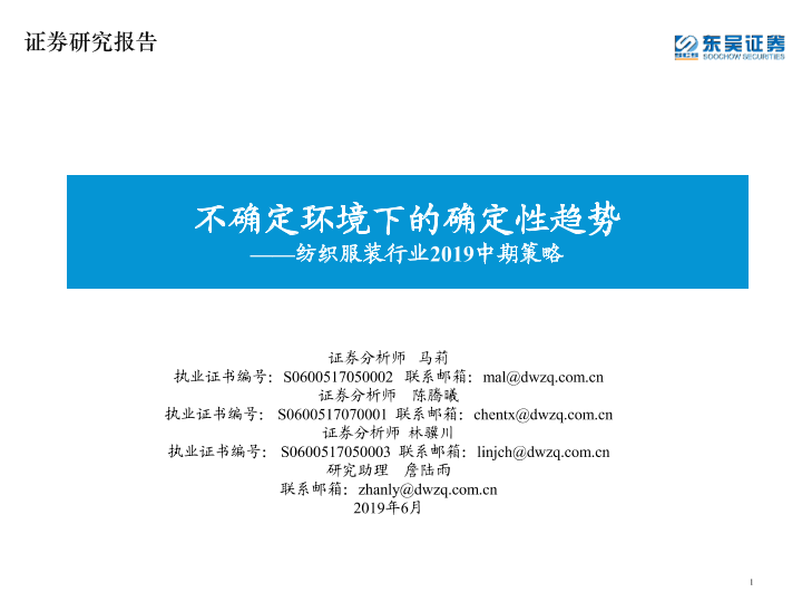 【东吴证券】【201906】2019中期策略:不确定环境下的确定性趋势-23页