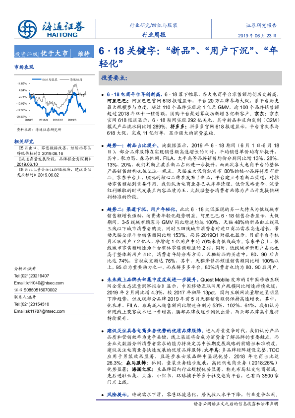 【海通证券】【20190623】20190623-海通证券-纺织与服装行业周报:6·18关键字:“新品”、“用户下沉”、“年轻化”-9页