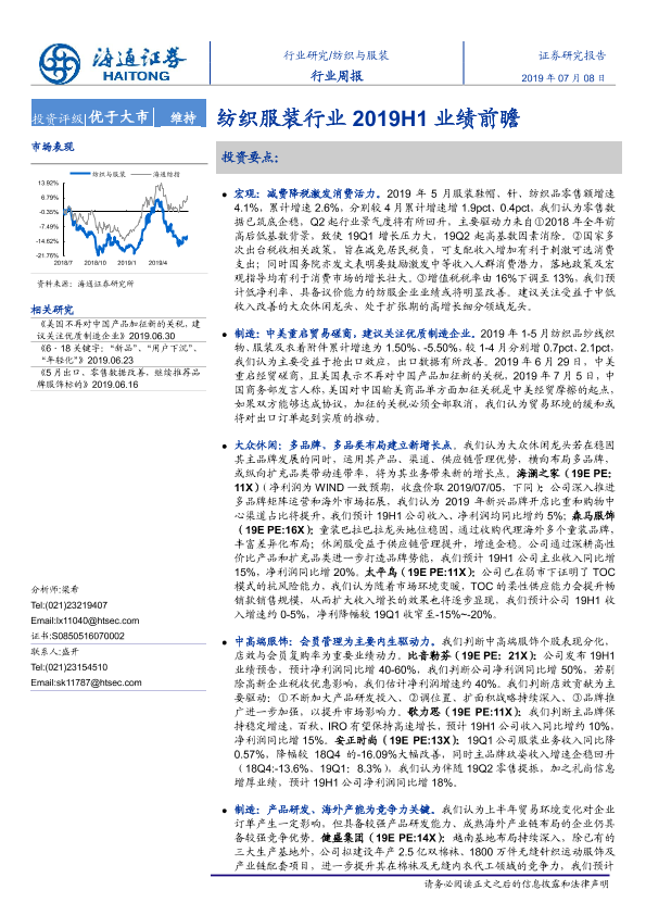 【海通证券】【20190708】纺织服装行业2019H1业绩前瞻-9页