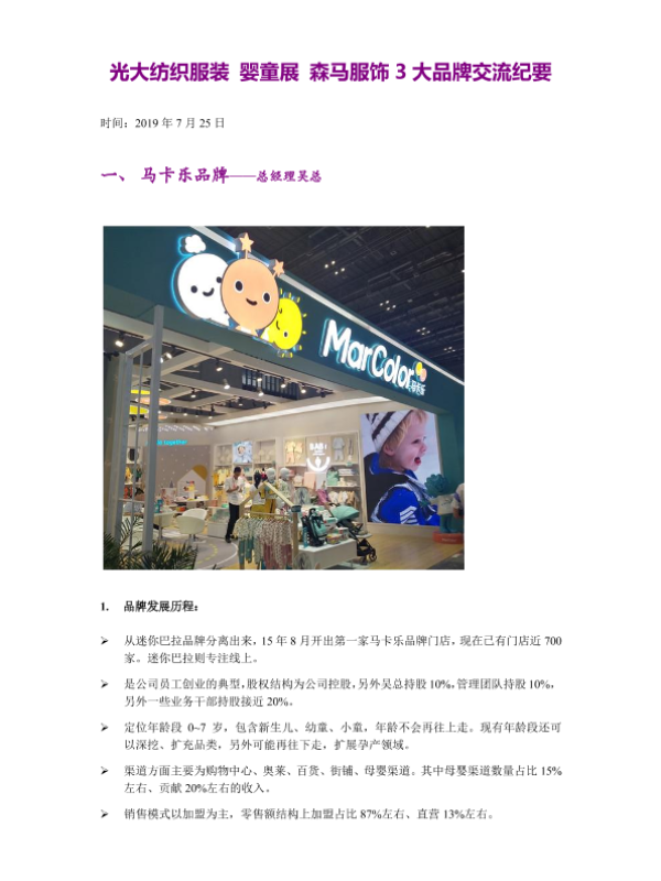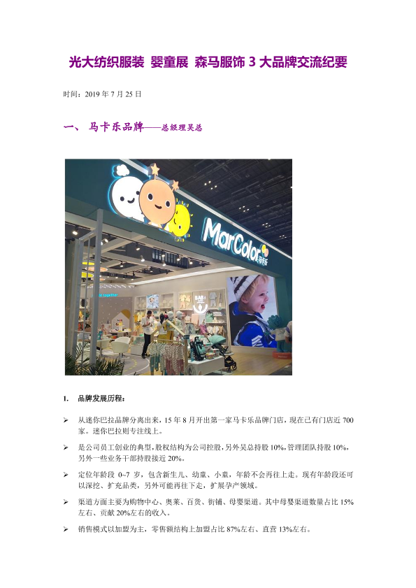 【光大证券】【20190725】光大纺织服装:婴童展 森马服饰3大品牌交流纪要-9页