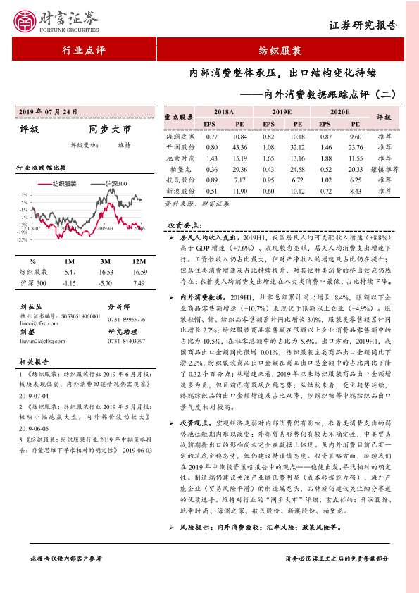 【财信证券】【20190724】内外消费数据跟踪点评(二):内部消费整体承压,出口结构变化持续-8页