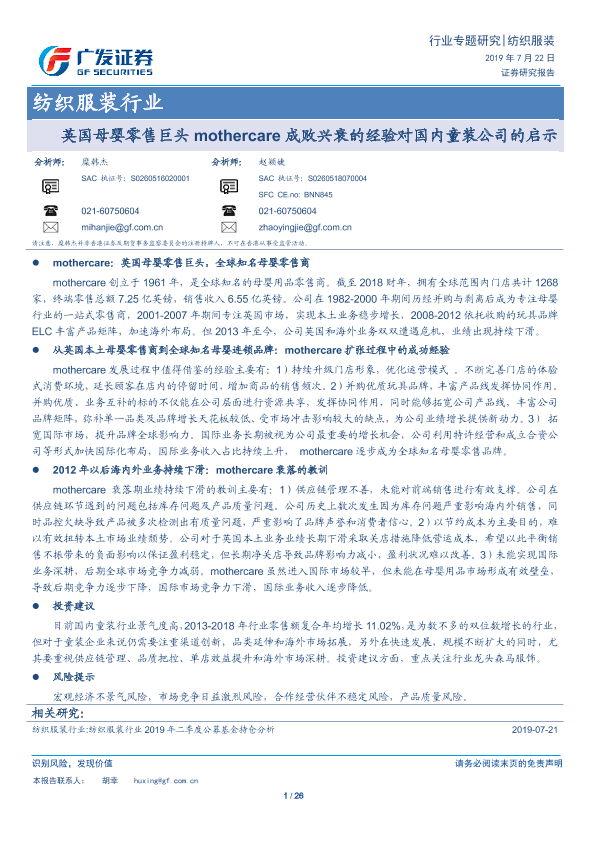 【广发证券】【20190722】英国母婴零售巨头mothercare成败兴衰的经验对国内童装公司的启示-26页