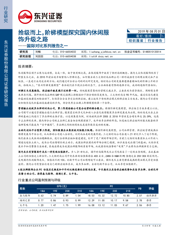 【东兴证券】【20190801】拾级而上,阶梯模型探究国内休闲服饰升级之路-45页