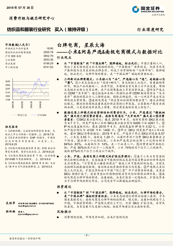 【国金证券】【20190730】纺织品和服装行业:小米&网易严选&南极电商模式与数据对比:白牌电商,星辰大海-38页