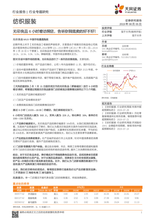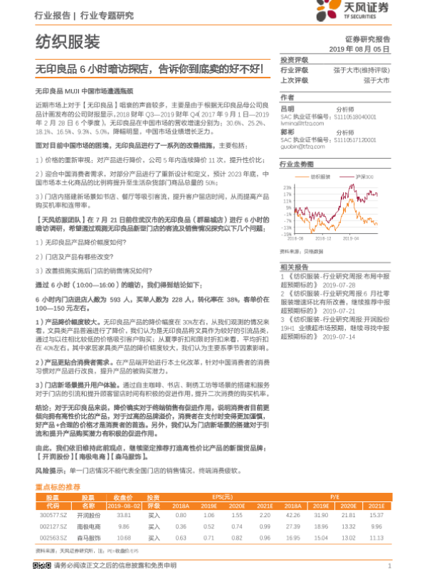 【天风证券】【20190805】20190805-天风证券-纺织服装行业专题研究:无印良品6小时暗访探店,告诉你到底卖的好不好!-31页