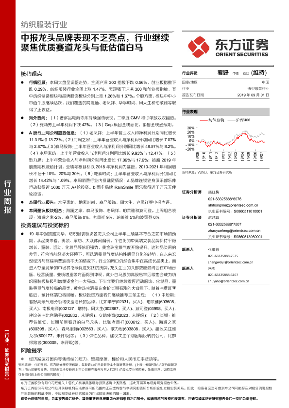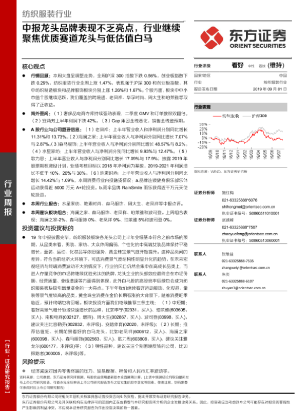 【东方证券】【20190901】纺织服装行业周报 —— 中报龙头品牌表现不乏亮点,行业继续聚焦优质赛道龙头与低估值白马-14页