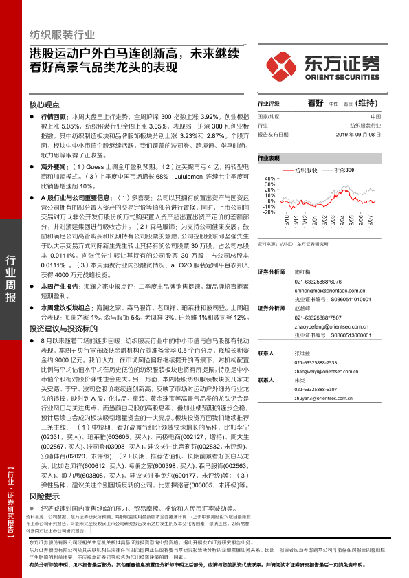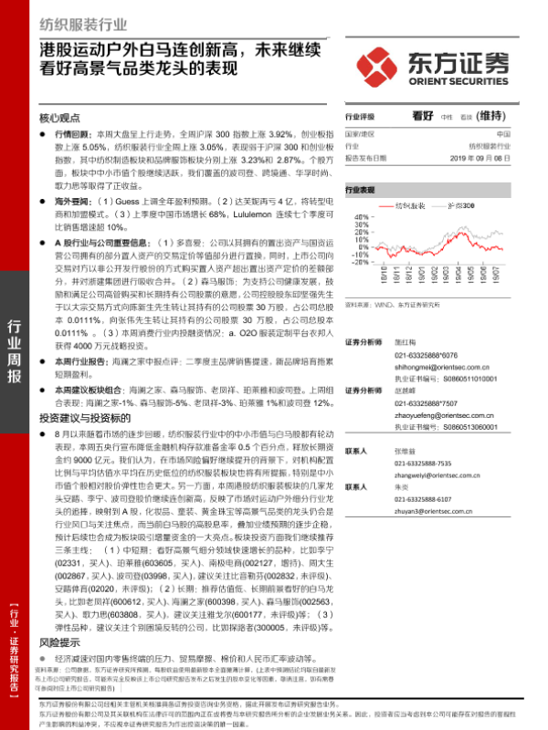 【东方证券】【20190908】20190908-东方证券-纺织服装行业周报:港股运动户外白马连创新高,未来继续看好高景气品类龙头的表现-12页