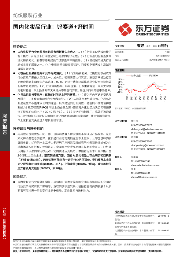 【东方证券】【20190916】纺织服装行业深度报告:国内化妆品行业:好赛道+好时间-26页