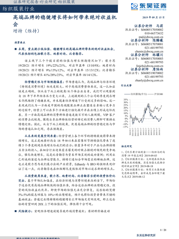 【东吴证券】【20190915】20190915-东吴证券-纺织服装行业:高端品牌的稳健增长将如何带来绝对收益机会-21页