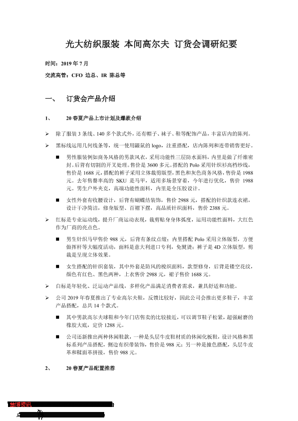 【光大证券】【20190927】光大证券-纺织服装行业 本间高尔夫 订货会调研纪要-5页