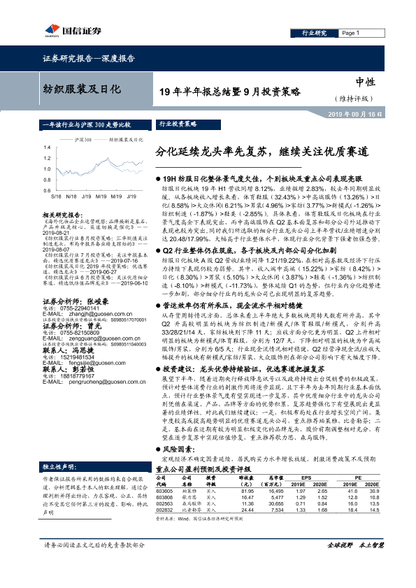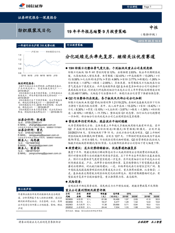 【国信证券】【20190916】20190916-国信证券-纺织服装及日化19年半年报总结暨9月投资策略:分化延续龙头率先复苏,继续关注优质赛道-48页