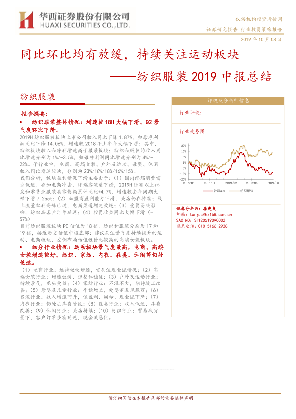 【华西证券】【20191008】20191008-华西证券-纺织服装2019中报总结:同比环比均有放缓,持续关注运动板块-25页