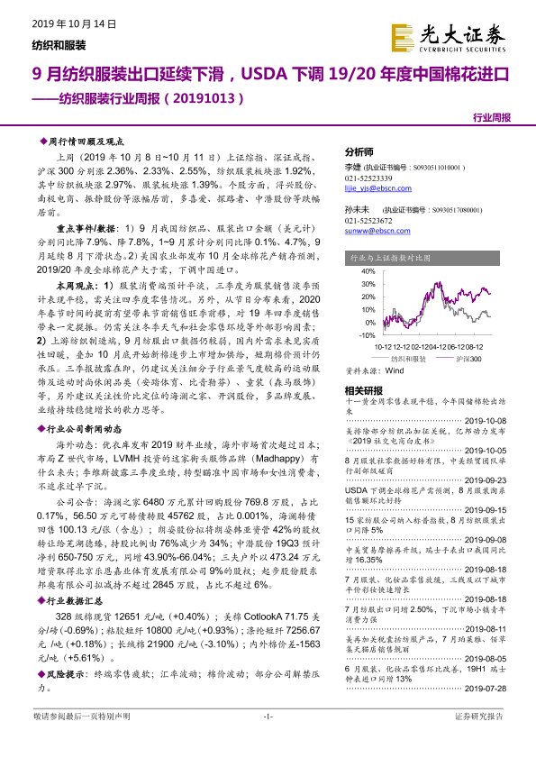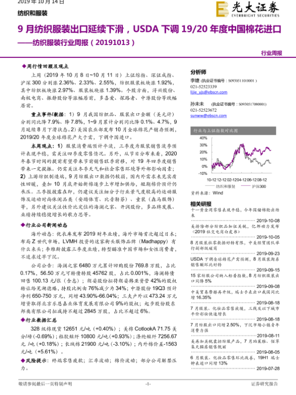 【光大证券】【20191014】20191014-光大证券-纺织服装行业周报:9月纺织服装出口延续下滑,USDA下调19 20年度中国棉花进口-20页