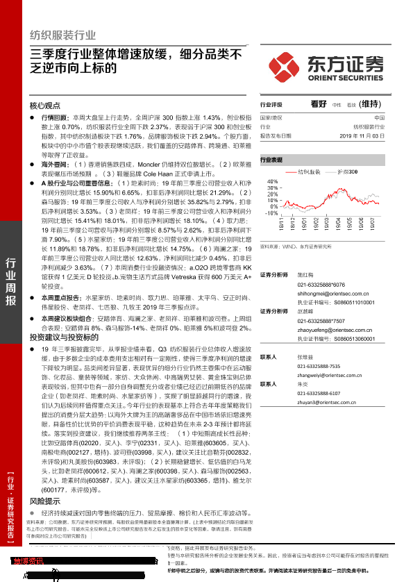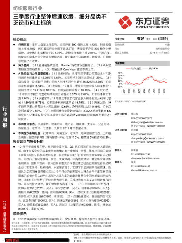 【东方证券】【20191103】纺织服装行业:三季度行业整体增速放缓,细分品类不乏逆市向上标的-18页
