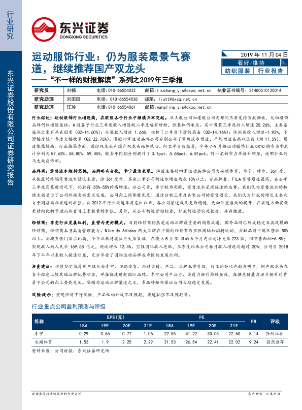 【东兴证券】【20191104】2019年三季报:运动服饰行业——仍为服装最景气赛道,继续推荐国产双龙头-10页